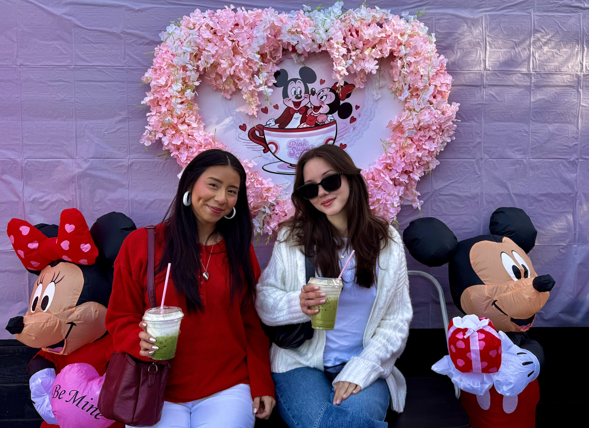 Recently they hosted a Valentine’s themed weekend called “Sweethearts Weekend: A Love Letter to Minnie Mouse.” The menu featured playful drink names like “PS I Love You,” “Main Street Brew,” “Mickey’s Secret Admirer,” “Minnie’s Matcha Kiss,” and more. One fan favorite, “Daisy’s Cupid Dream,” had customers posing in the themed photo area while sipping bright green matchas and enjoying the cozy setup.