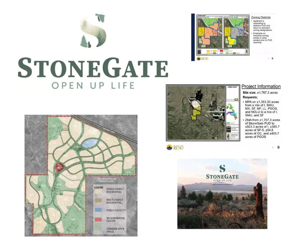 Let me review what’s happened. On August 4, 2025, dozens of citizens showed to the Regional Planning Commission (RPC) to provide nearly two hours of public comment across both general and agenda-item-specific comment against StoneGate’s Master Plan Amendment (MPA). The developer (Heinz Ranch Land Co. LLC) wants to change its initial development from 5,000 homes to about 1,300 and replace those homes with a sprawling industrial park of which at least ~15% would be dedicated towards datacenters. TMRPA praised the public's high level of participation as did many of the Planning Commissioners (both City and Regional). Ward 4 Reno City Councilor Meghan Ebert gave public comment as well, and stayed the duration of the meeting.