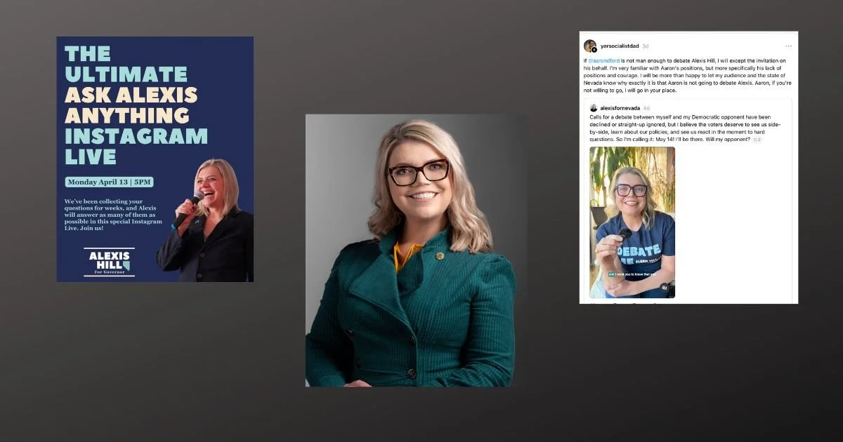 While at one point of her gubernatorial campaign Alexis Hill changed up who was sending emails on her behalf, from the local Riley Sutton to now LA-based Shana Krochmal, she has soldiered on with her populist hyper busy on the socials, seemingly progressive lane candidacy, with her “end tax giveaways to billionaires” refrain.